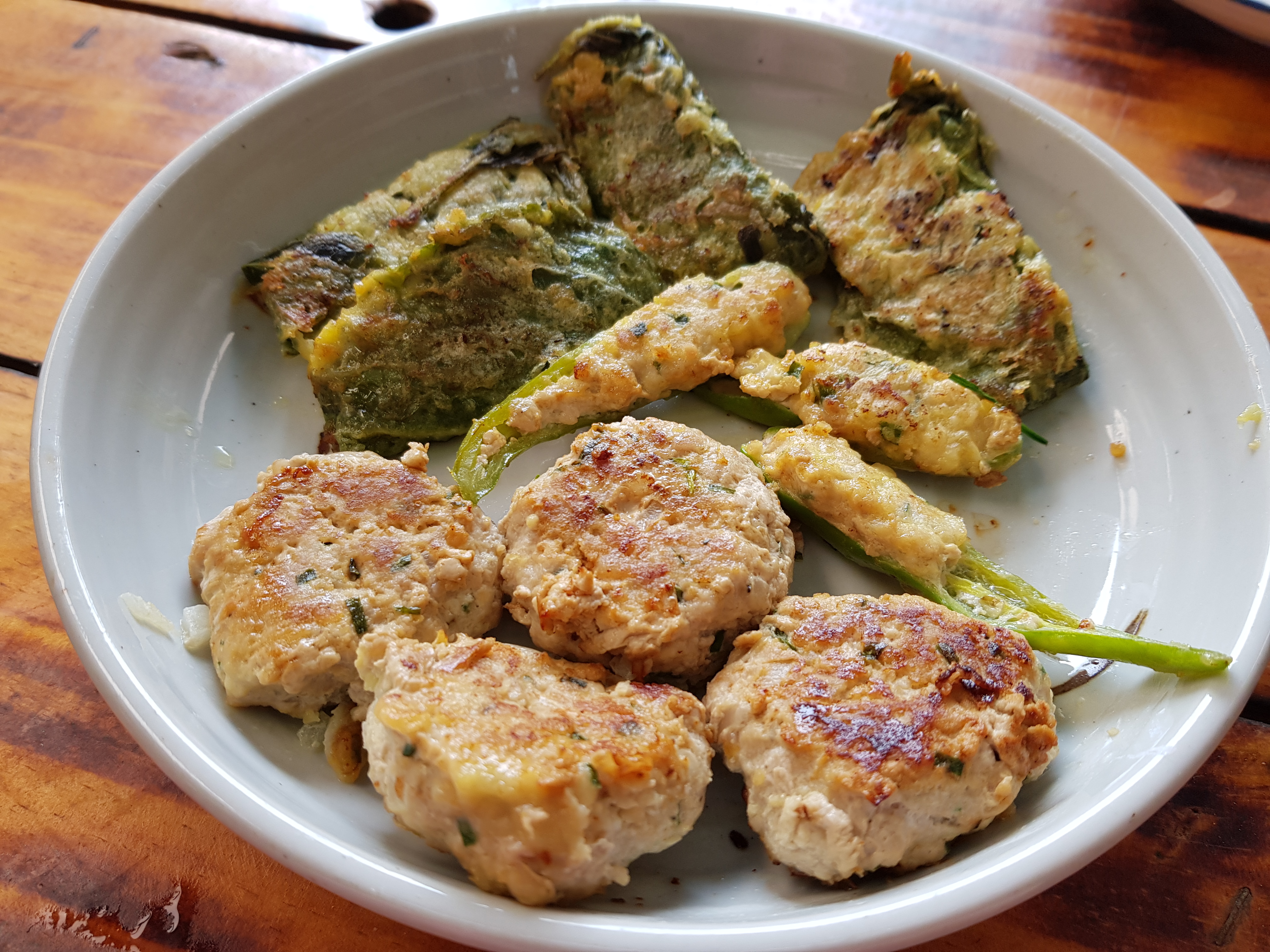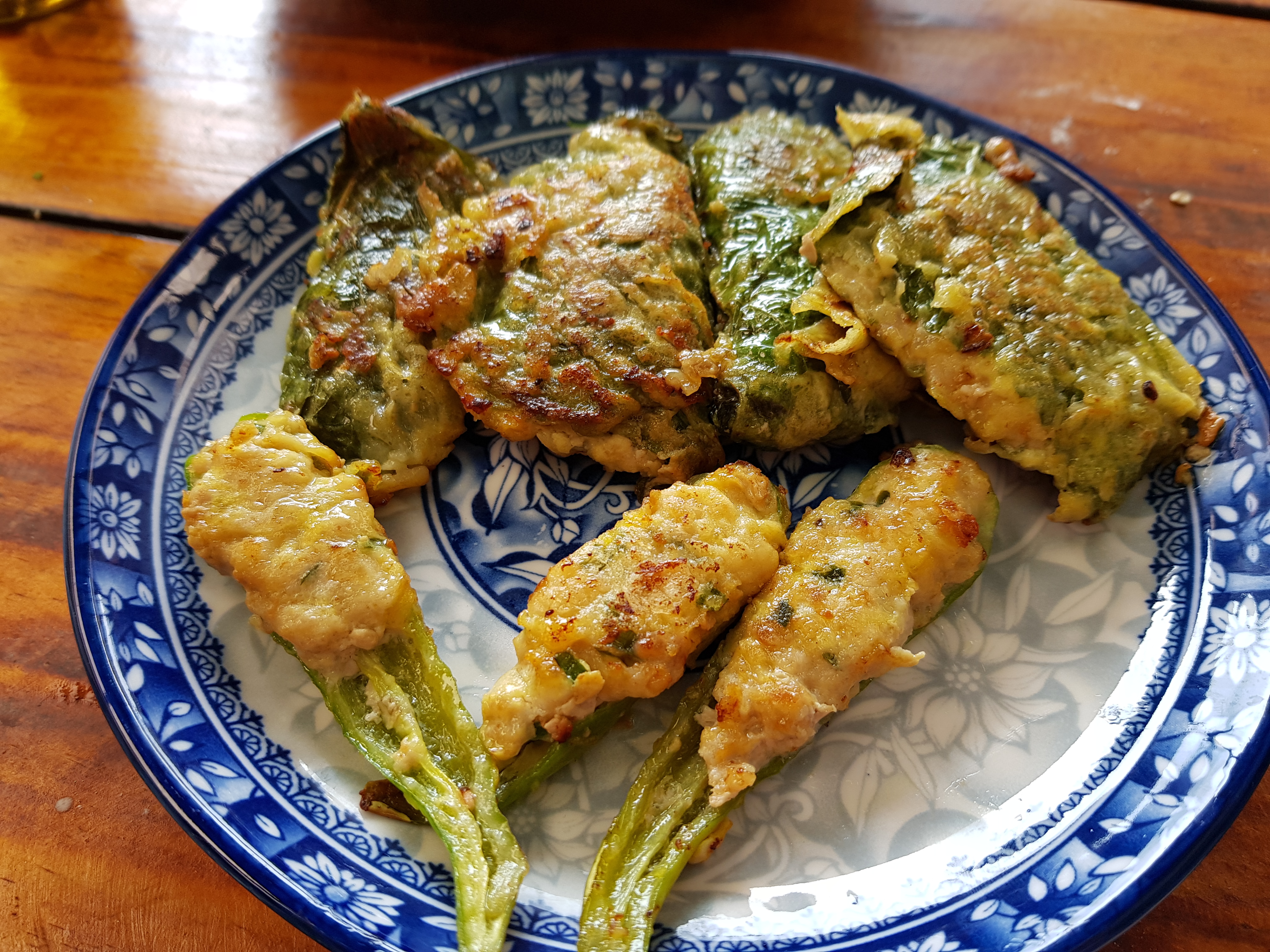 동그랑땡을 속재료로 사용해서 고추와 깻잎에도 넣어보았어요.