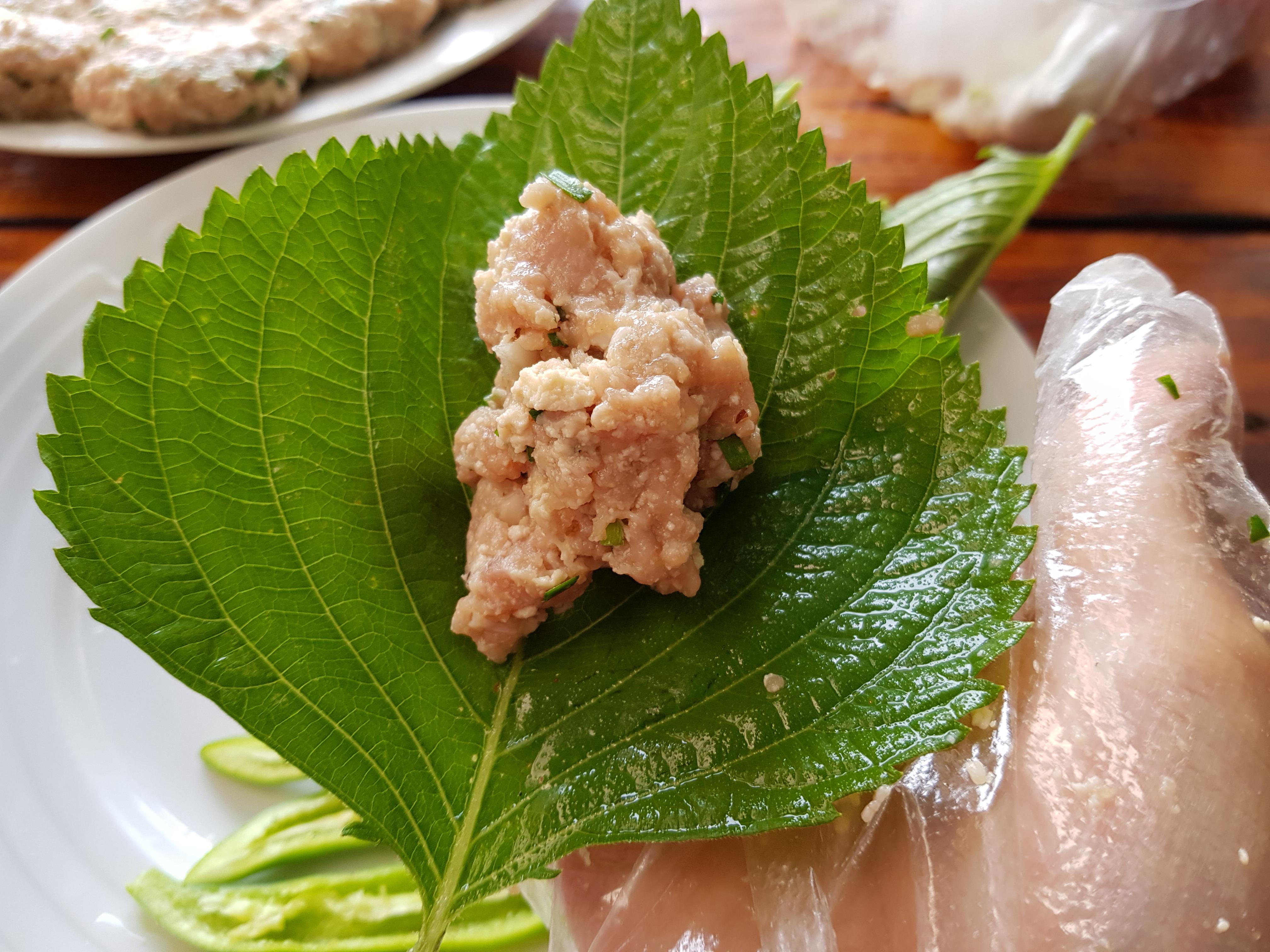 향이 좋은 깻잎에도 싸면 깻잎전을 먹을 수 있어요.