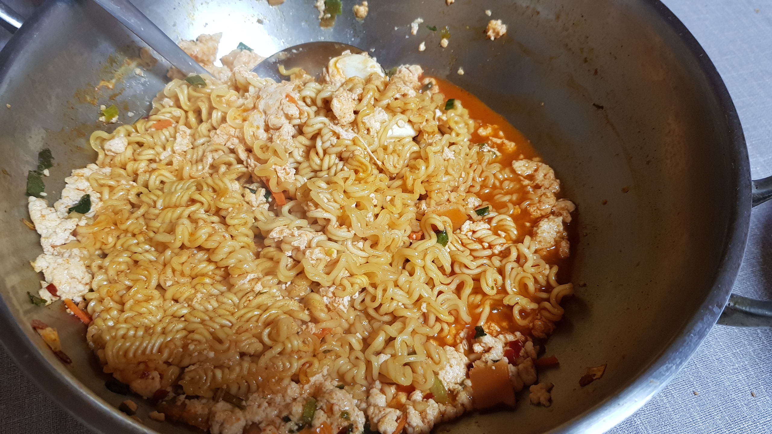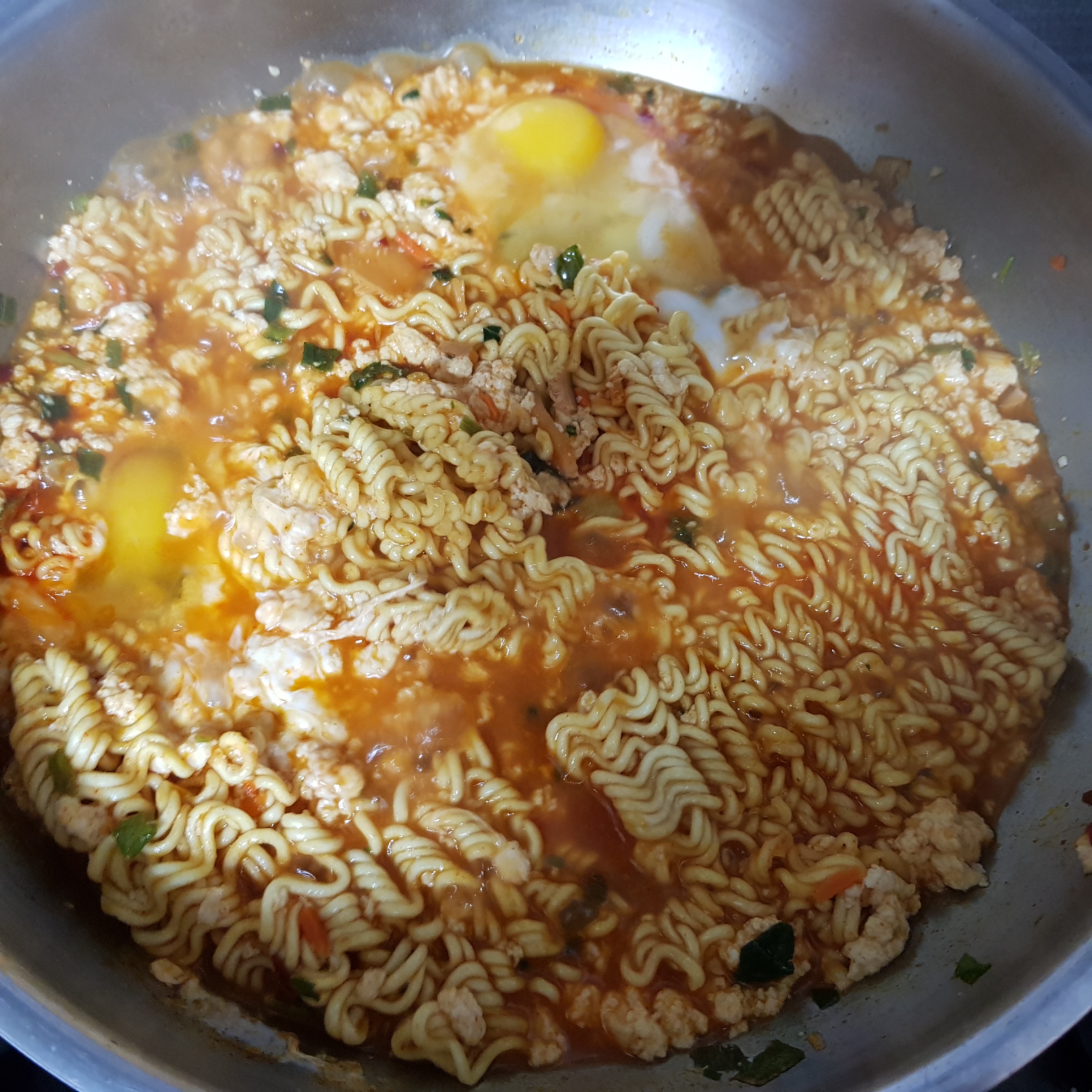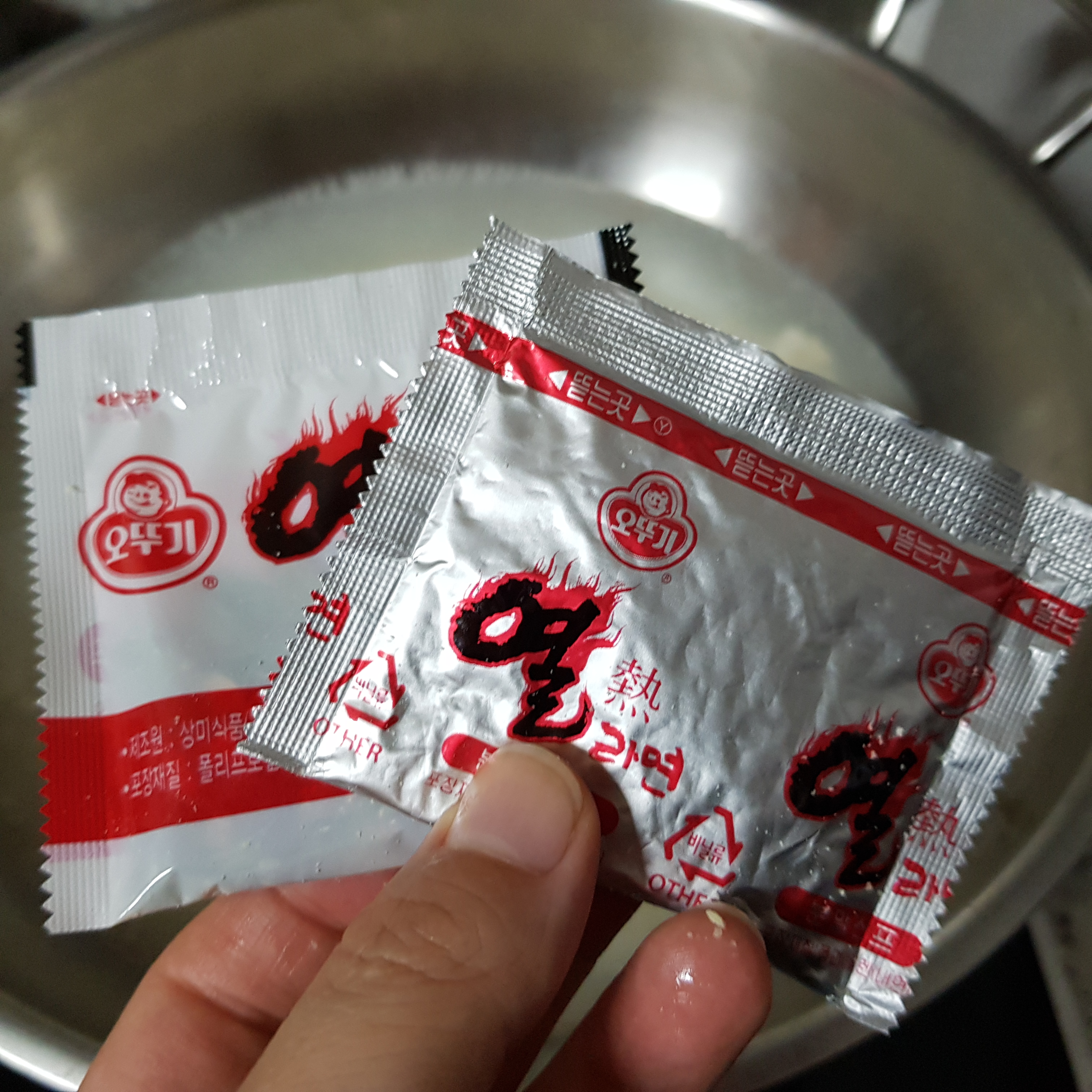저는 열라면 3개, 수프 2개 반, 순두부 1봉, 계란 2개 이렇게 먹었습니다.