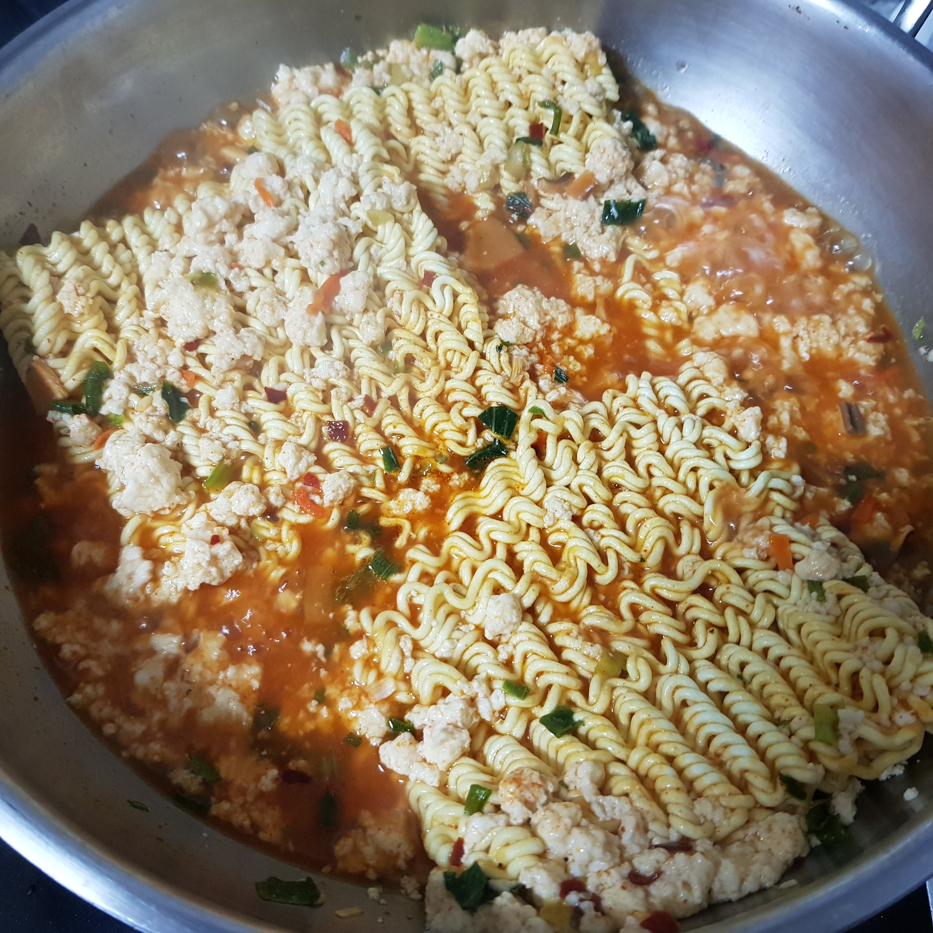 라면 물은 원래보다 조금 적게 넣는 것이 포인트라고 해요.