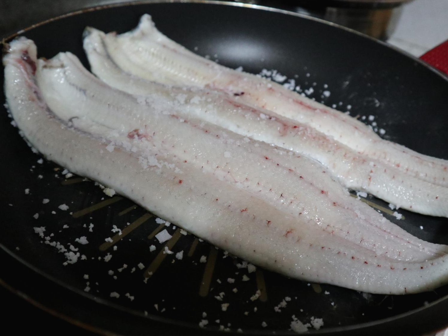 옆에 부스러기는 장어살이 아니라 소금이어요.