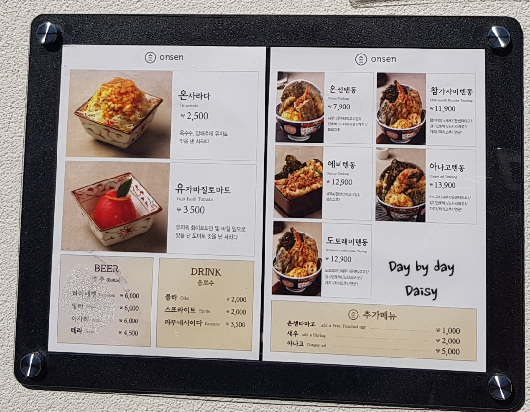온센은 온천이라는 일본어고 텐동은 튀김덮밥이라는 뜻이래요.
