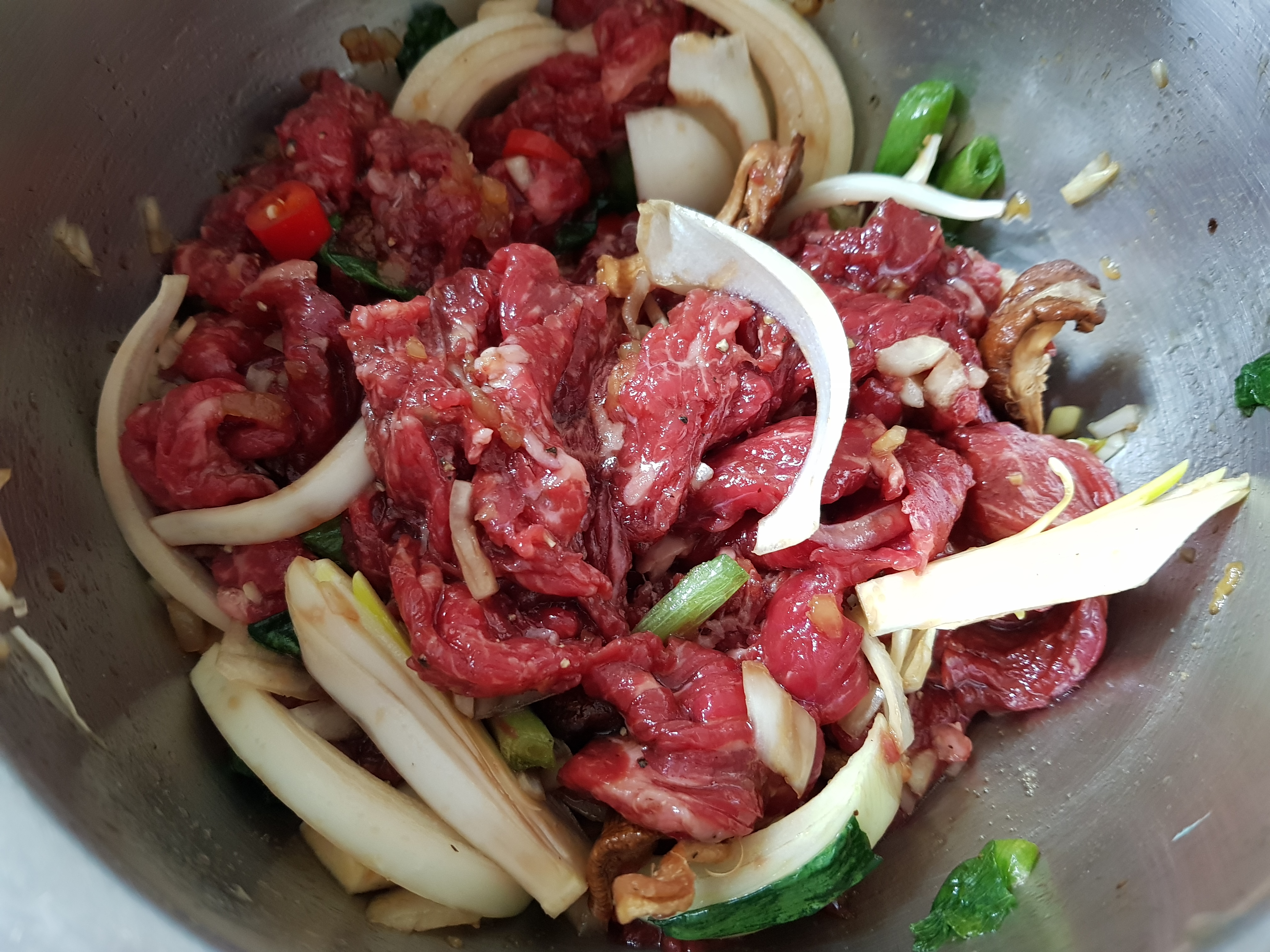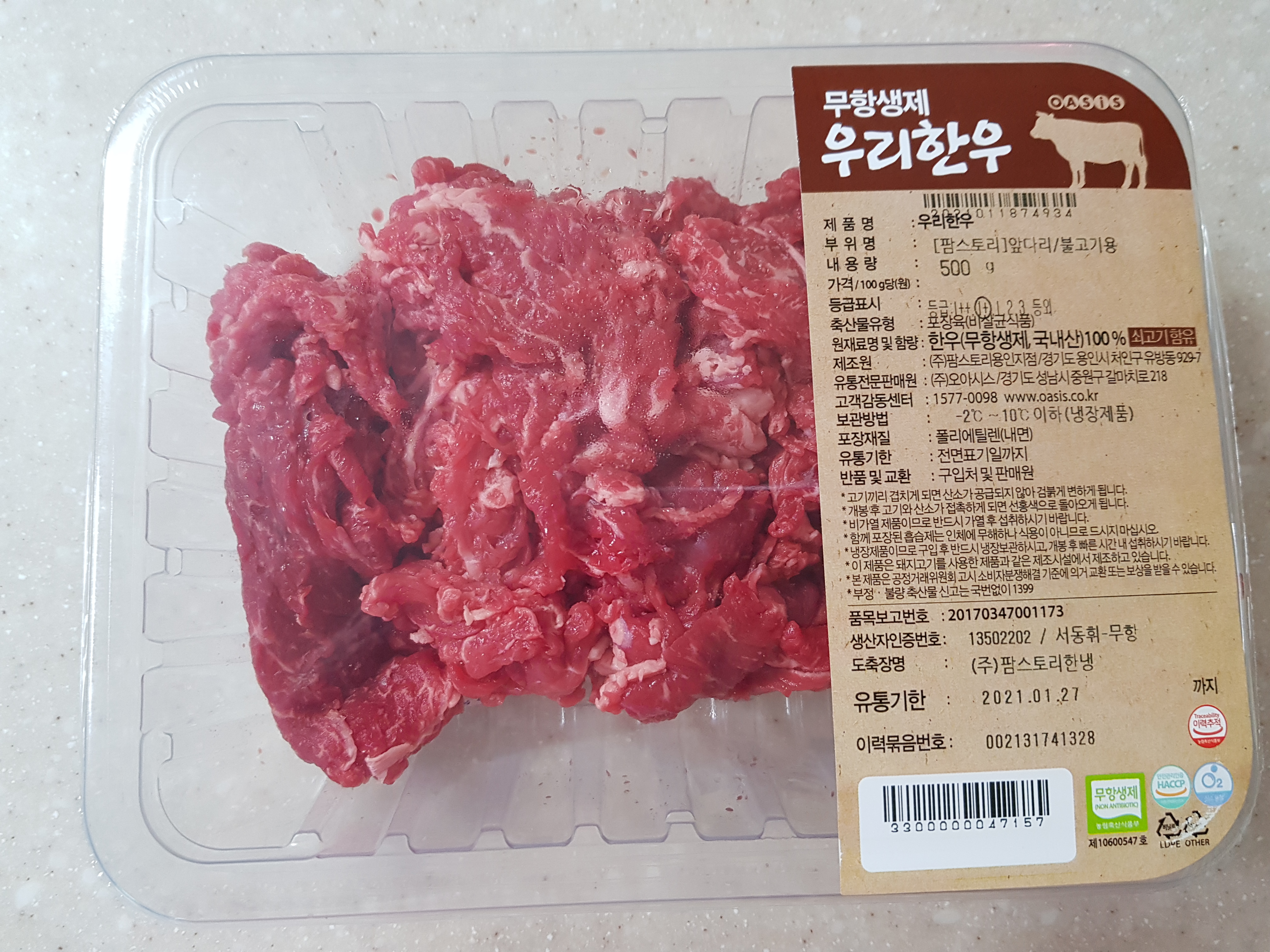 저는 이미 얇게 잘린 불고기 용이라서 따로 자르지는 않았어요.