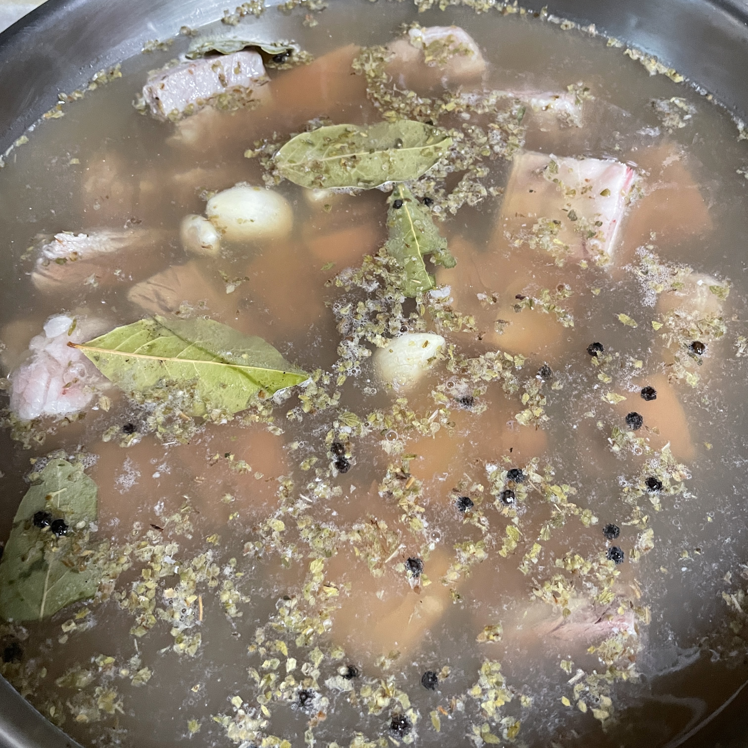 저는 저희 집에 있는 향신 재료들을 넣고 먼저 초벌하였어요.