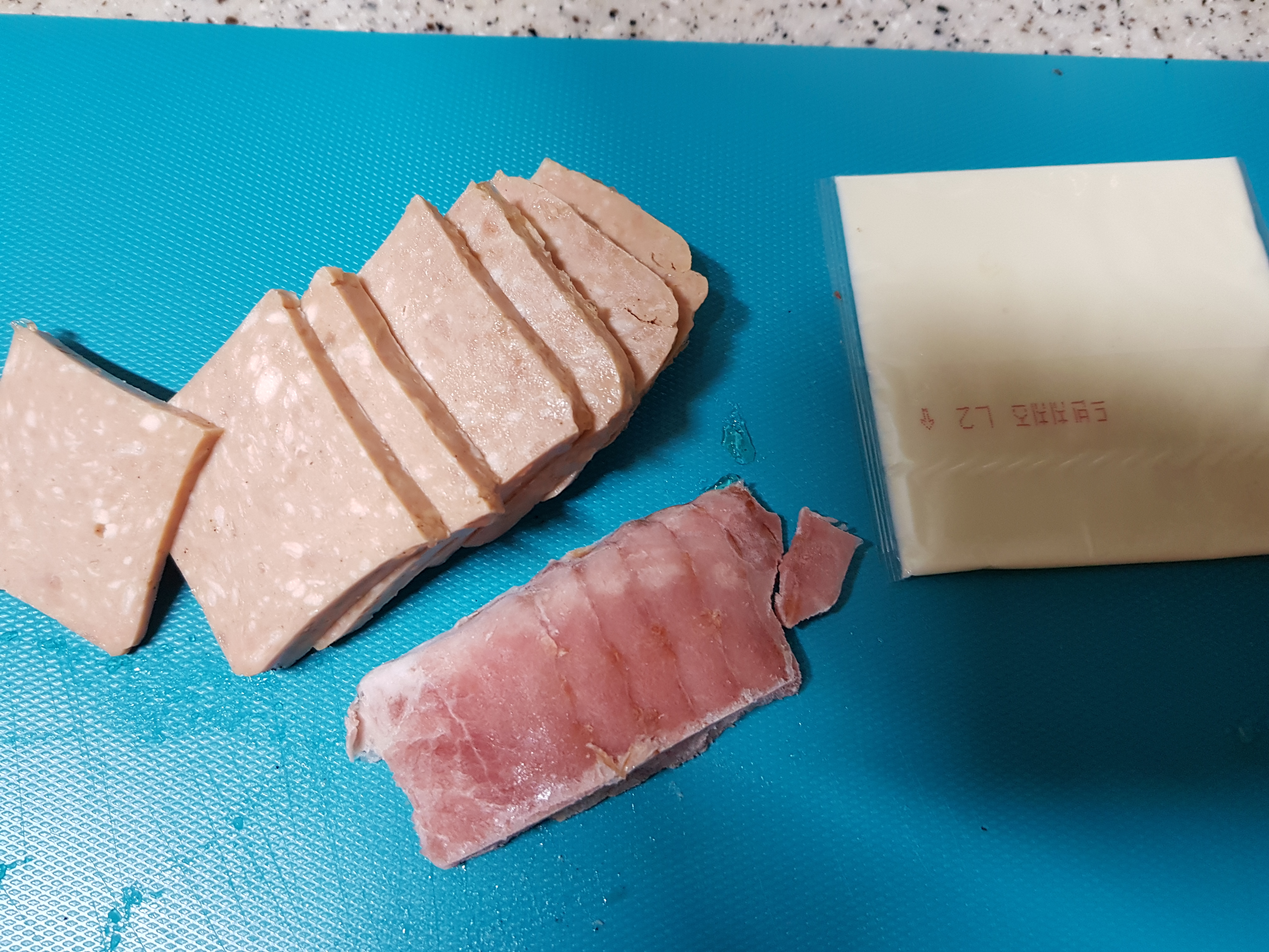 저는 여기에 저희 집 스팸과 베이컨, 치즈를 추가해주었어요.