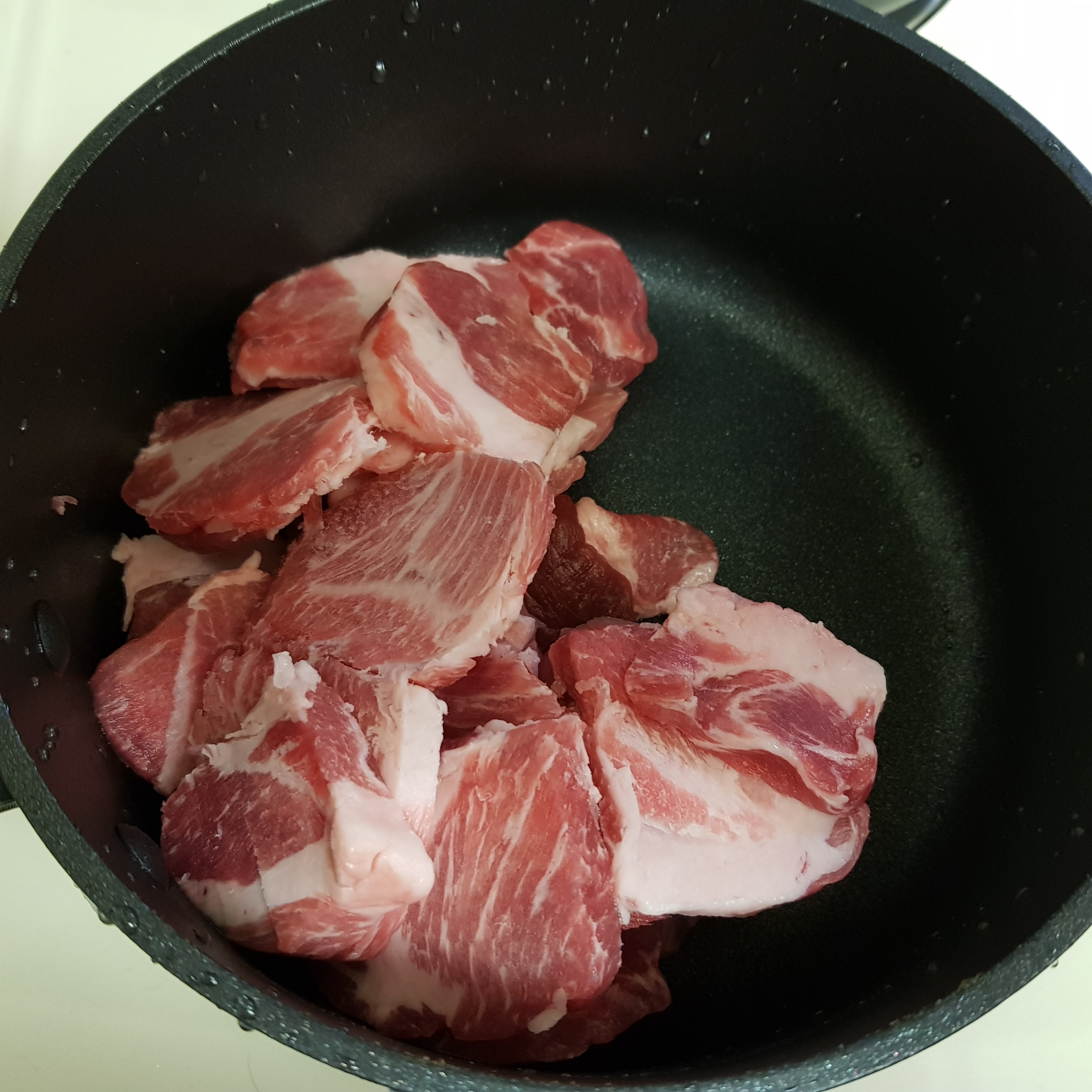 먼저 돼지고기를 준비해주세요. 어떤 부위든 상관없습니다.