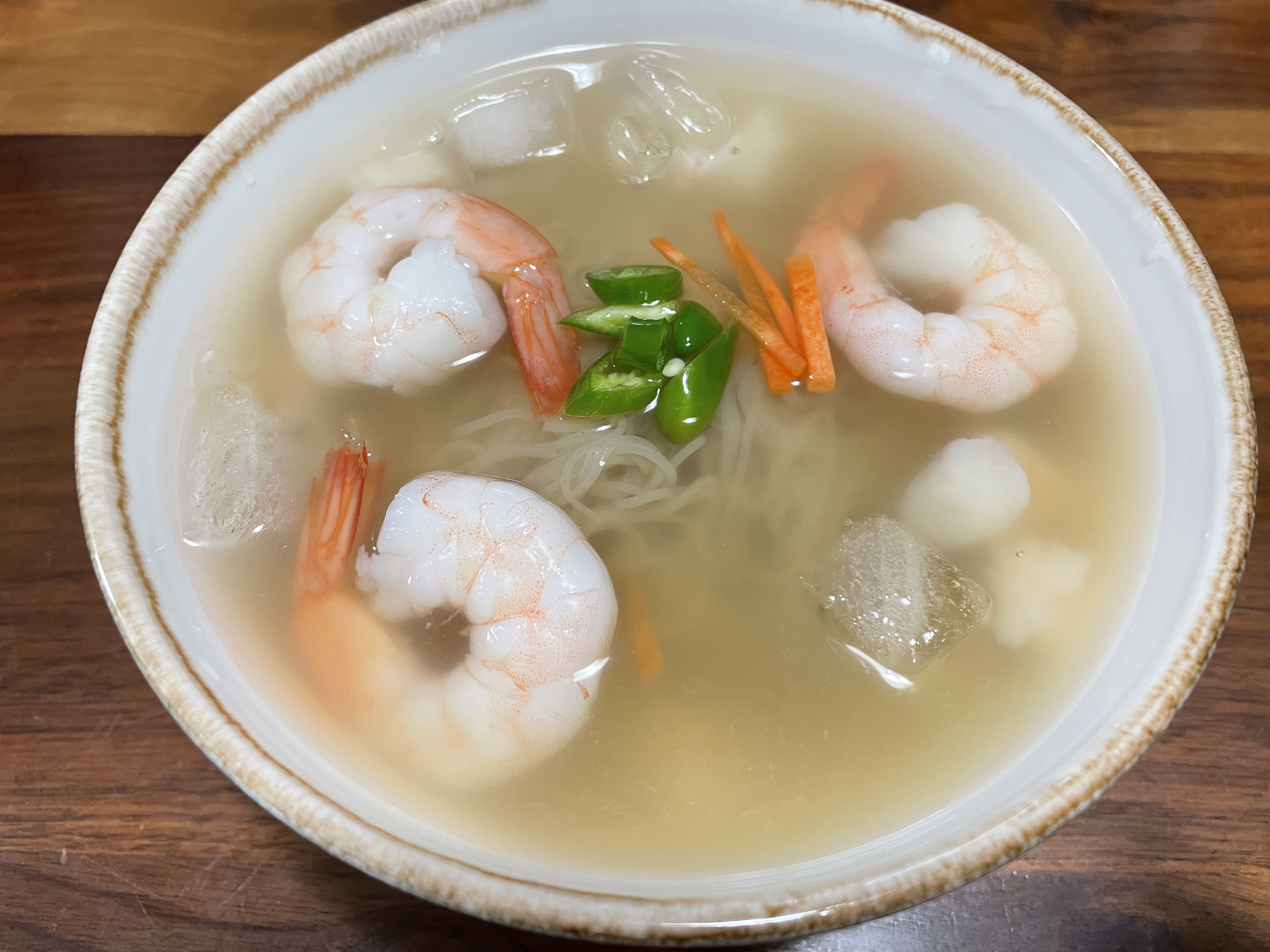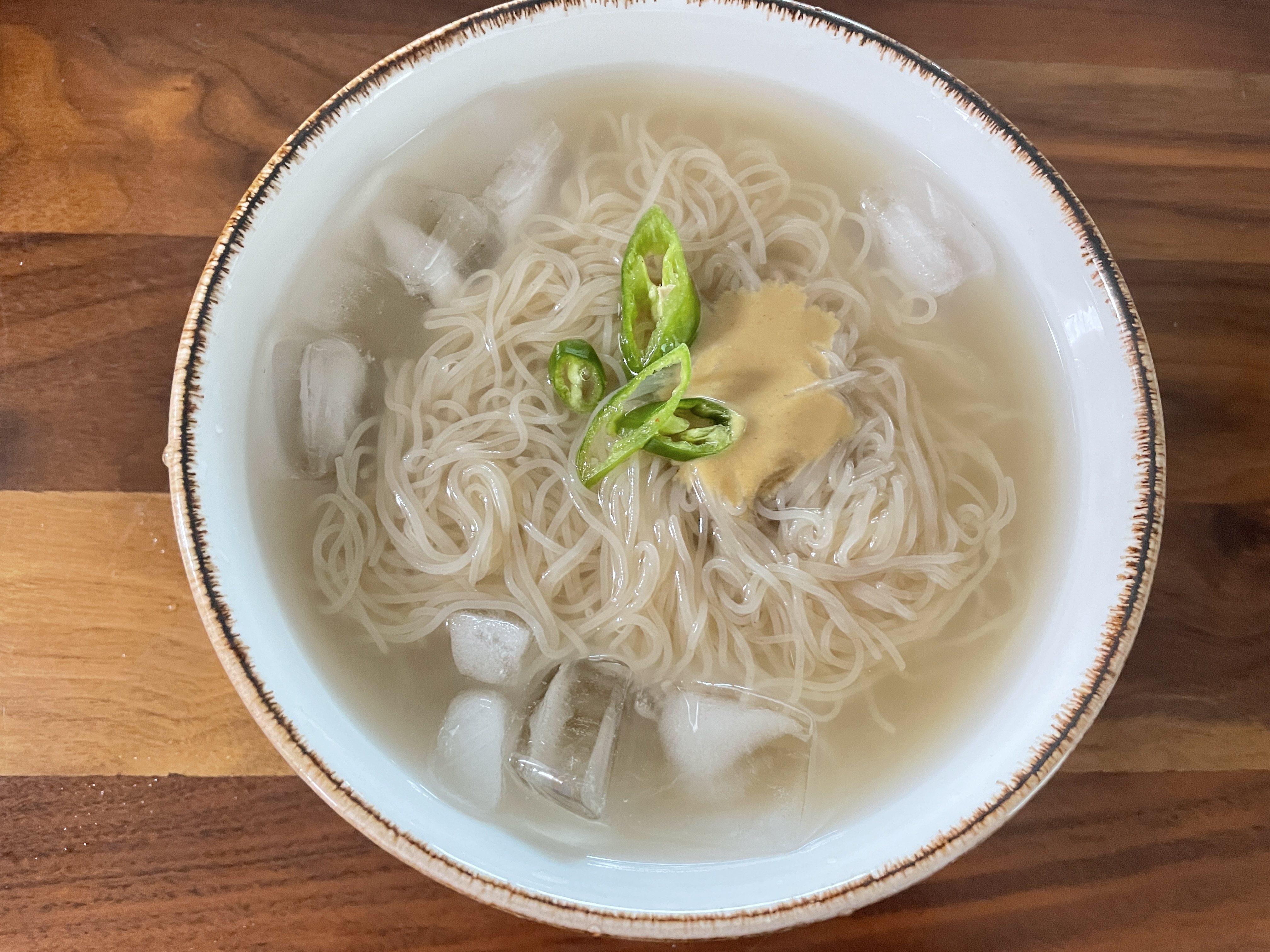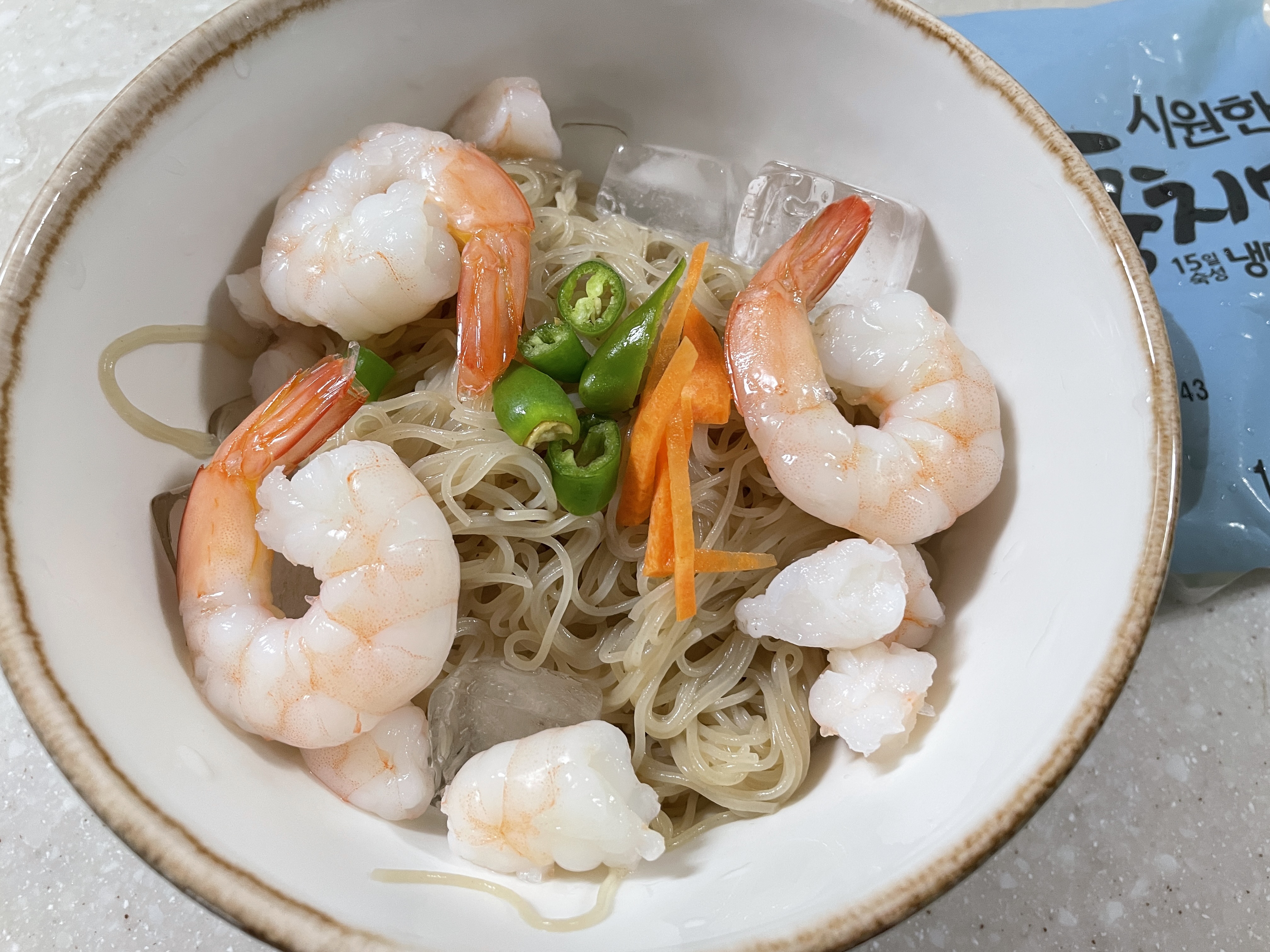 육수는 얼리지는 못하고 얼음을 띄워서 먹었습니다.