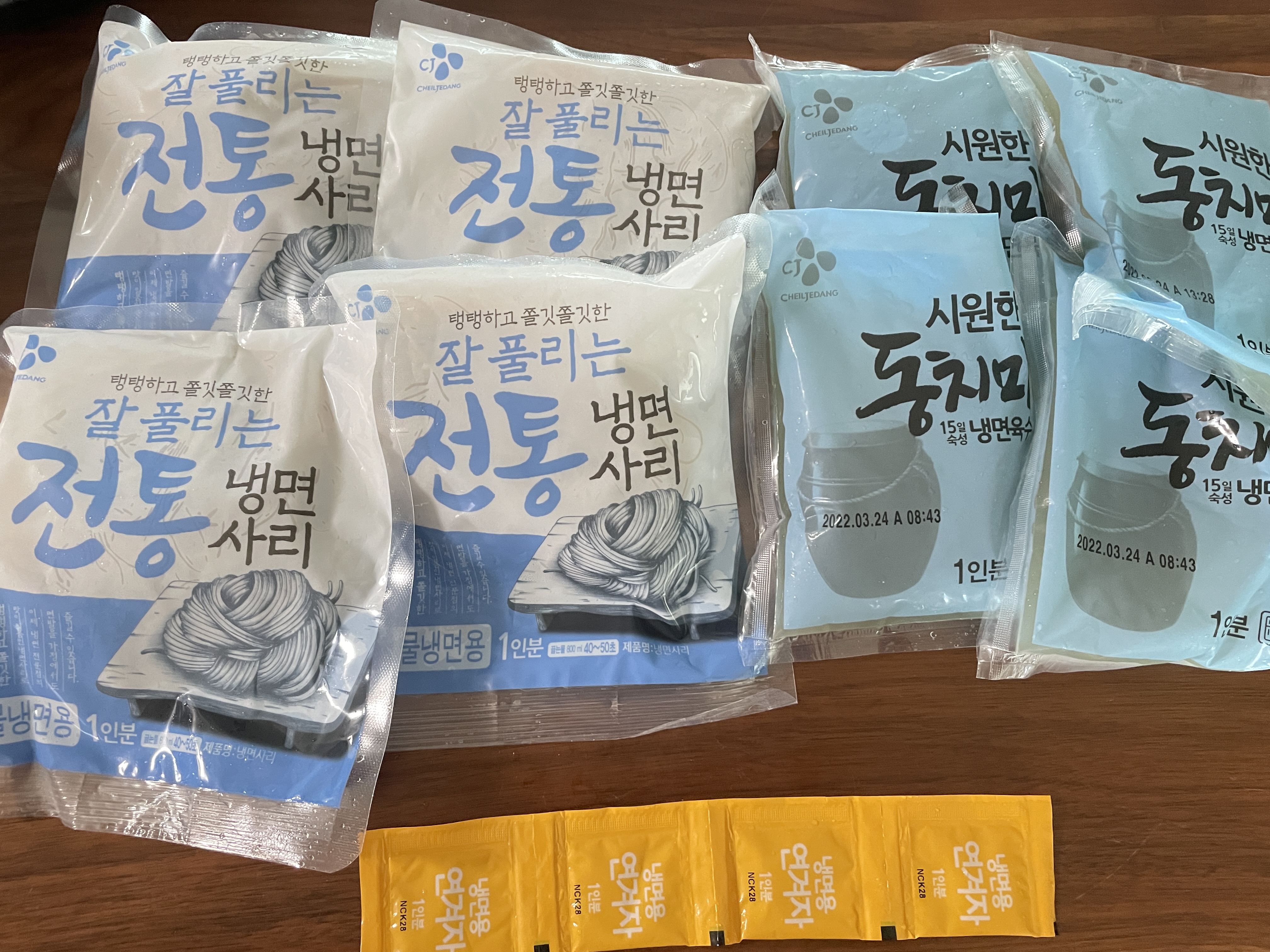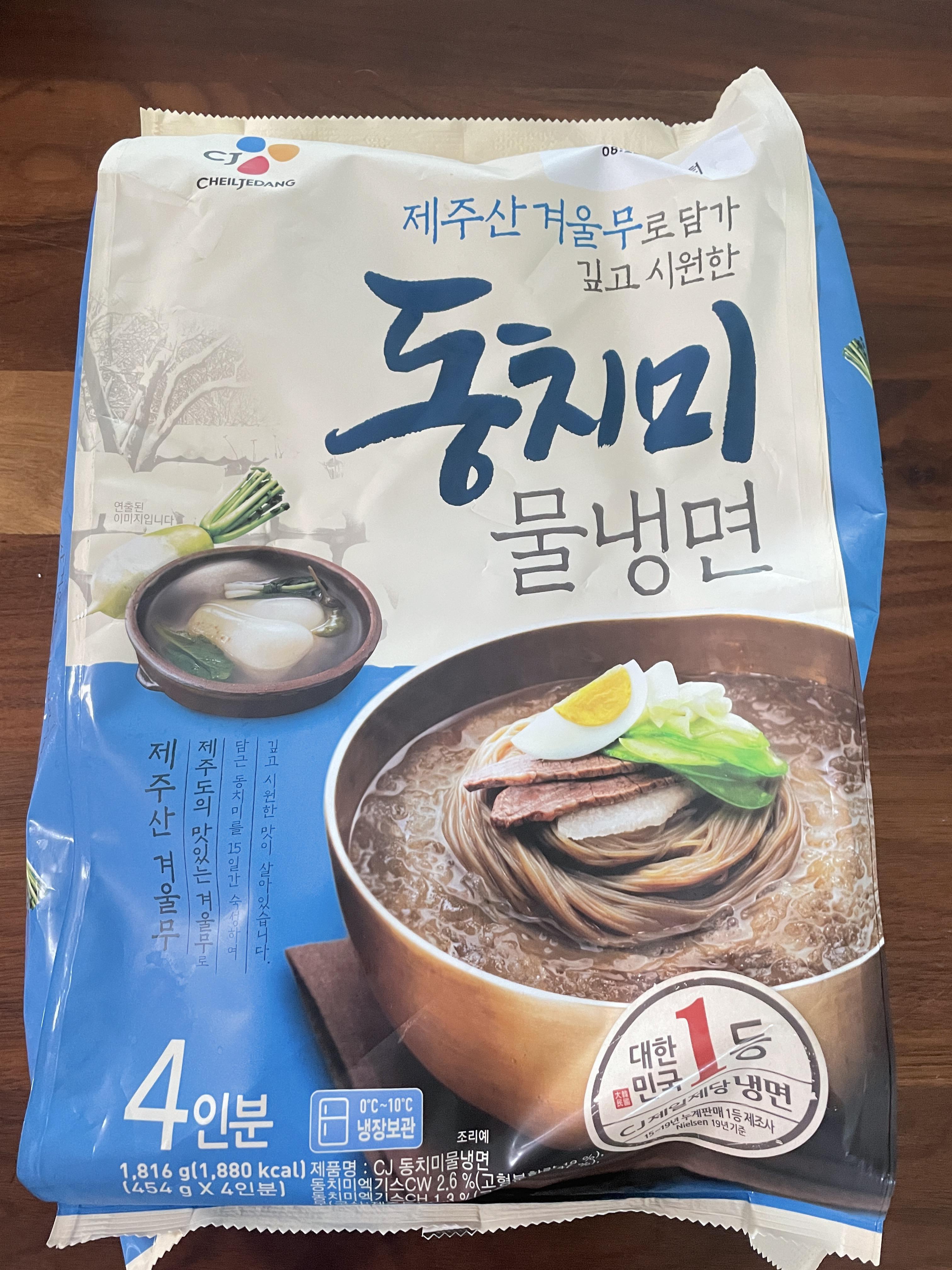 이건 냉면, 육수, 겨자소스가 들어있는 제품이고 고추만 제가 추가한 것입니다.