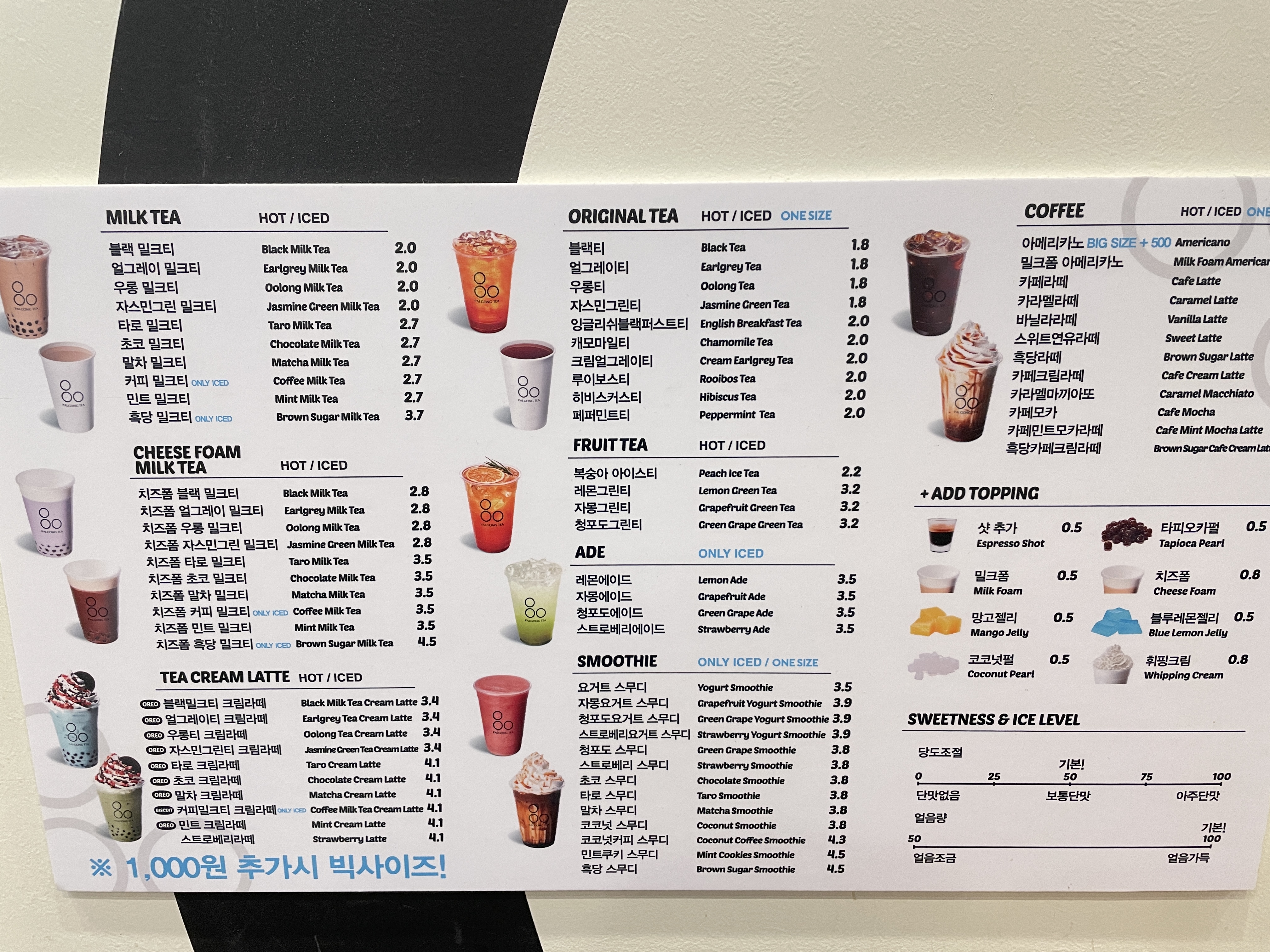 저의 추천은 얼그레이 밀크티와 타로밀크티입니다.